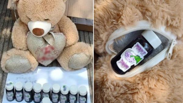 墨西哥国民警卫队使用嗅探犬在锡那罗亚贩毒集团的堡垒库利亚坎市的一个邮政服务办公室发现了这只泰迪熊。当局在一份声明中说,泰迪熊里面有10小瓶含有可待因的瘦肉。虽然产品的照片是模糊的,但瓶子上似乎有一个苏打水瓶被倒入紫色液体的图像,上面写着“紫色饮料”。这只泰迪熊注定要被送到边境城市提华纳,就在加利福尼亚州圣地亚哥南部。