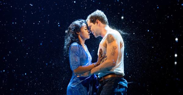 如果你不熟悉的话,《恋恋笔记本》是一个爱情故事。艾莉和诺亚在十几岁时相遇,并在一个浪漫的夏天坠入爱河。诺亚去了战争,两人失去了联系,几年后才团聚,发现他们的激情并没有减弱。在这部电影和这部音乐剧中,这一切都发生在一个高潮场景中,这对情侣在最性感的暴风雨中跳舞和接吻。
