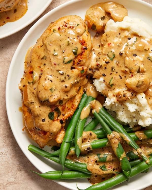一锅奶油蒜香鸡这个食谱是赢家鸡晚餐的定义。从黄油准备1中获取食谱