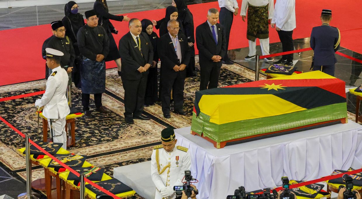 早些时候,塔伊布的遗体被安放在砂拉越立法议会大厦供公众从上午8点到11点30分进行最后的悼念。