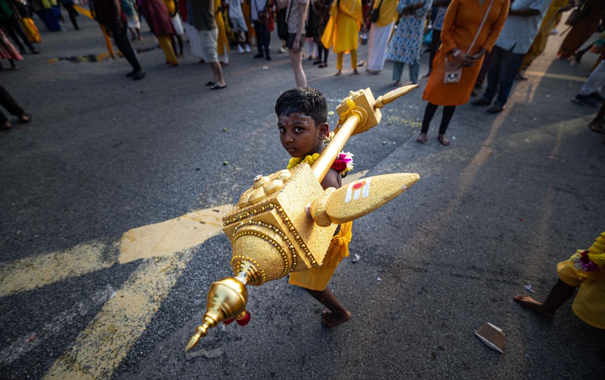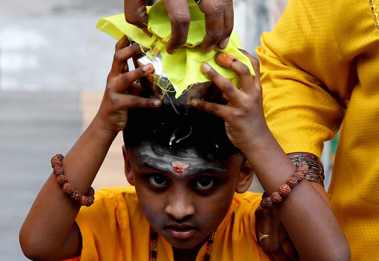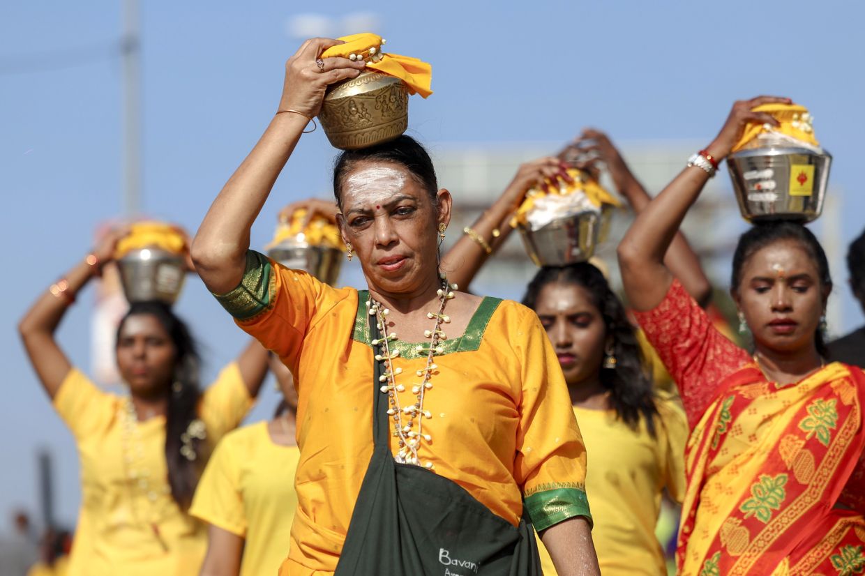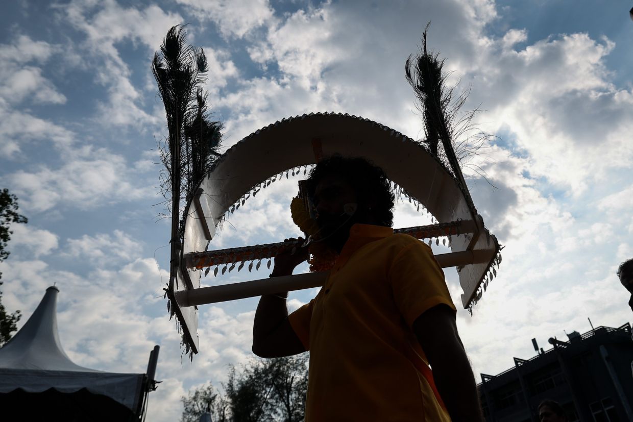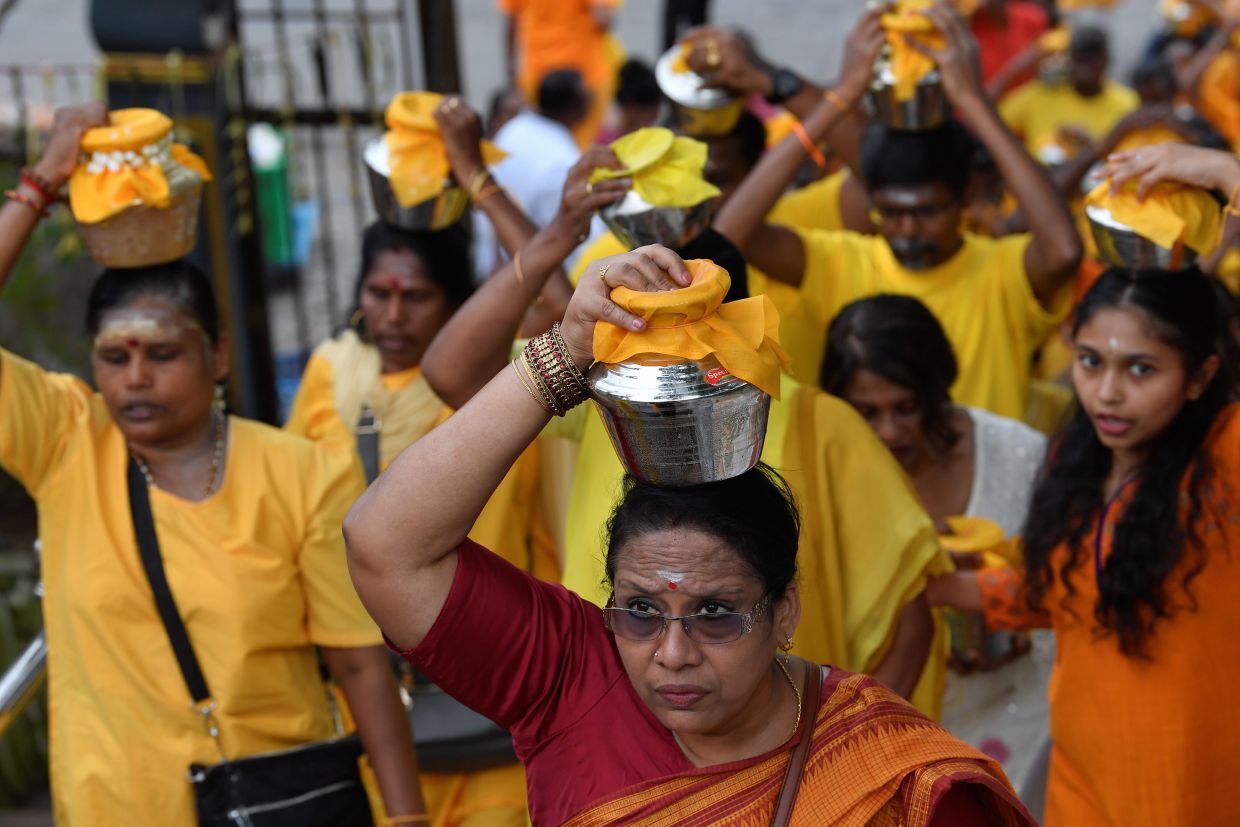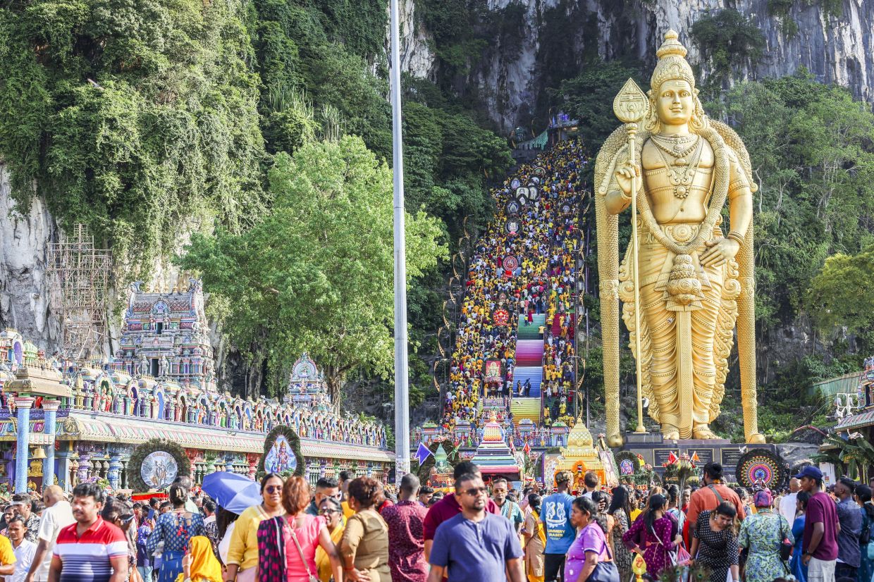 成千上万的人继续聚集在巴图洞穴的Sri Subramaniar Swamy寺庙,这里是该市每年庆祝活动的中心,信徒们早在早上7点就开始到达寺庙,一些人拿着Paal Kudam(牛奶罐)和kavadis,而其他人则砸碎椰子,剃光头发,以履行各自的誓言。