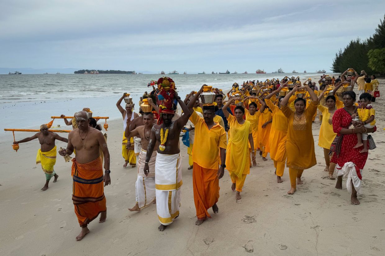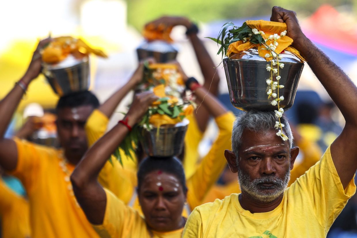 在雪兰莪州,大约400名印度教信徒拿着牛奶罐组成一个小队伍,走向沙阿南的Sri Subramania Swami寺庙,向印度教神灵Lord Murugan供品。
