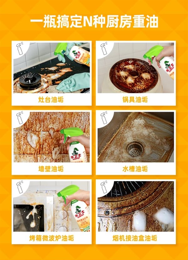 这款厨房重油污清洁剂专为中式厨房设计,能快速溶解顽固油渍,只需一分钟就能让灶台恢复洁净。产品采用高效配方,轻轻一喷一抹即可完成清洁,省时省力又省心。