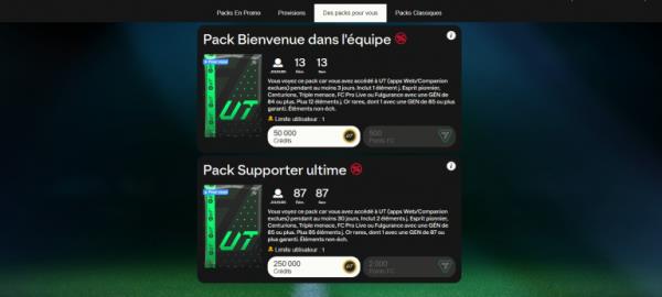 如果对于10/30积分包,金额不会吓到你,我们仍然在谈论50,000积分或5欧元的FC积分,用于“欢迎加入团队”,以及250,000积分或20欧元的FC积分用于最后一个,“终极支持者包”。
