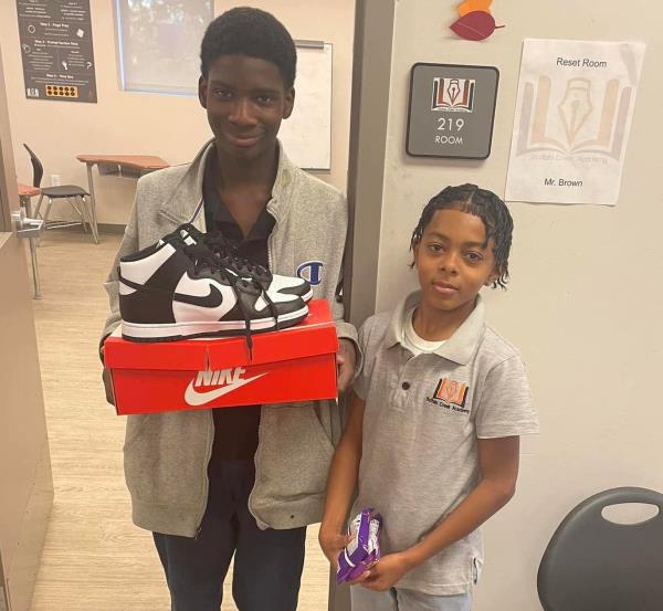 当梅尔文最初把他的运动鞋带回家时,他告诉他的父母,这是一个朋友的旧衣服,他穿不下了。但当布朗请求允许将照片发布到Facebook上时,他们得知了真相。