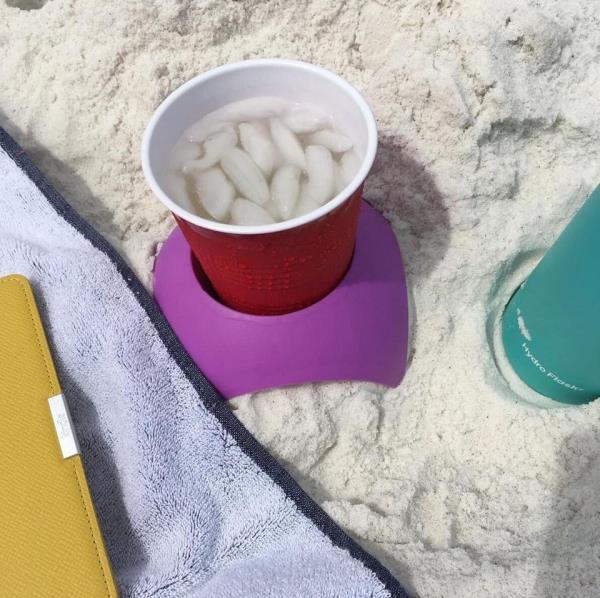这对我们最近的海滩之旅很方便。它们把你的饮料端直,坐在沙滩上。能让你的杯子或瓶子远离沙子真好。它们很容易清洗,可以直接扔进你的沙滩包里。绝对推荐!”——安德里亚,亚马逊售价13.99美元