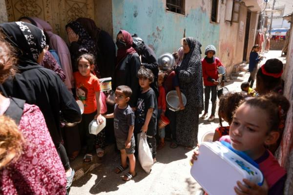 住在拉法难民营的加沙人也不得不忍受热浪带来的难以忍受的高温。