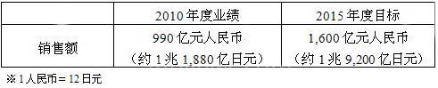 针对“十二五规划”所明确的中国发展方向,日立也相应制定了以“进一步推动中国事业的本地化”和“强化集团协作效应”为核心的“中国事业战略2015”。扩充营业机构,不断推动中国事业的本地化,预计到2015年度目标销售额达到1,600亿元,较2010年度提高1.6倍。