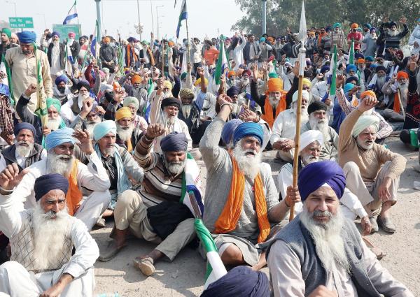 在“Bharat Bandh”(全印度封锁)的口号下,农民们在早上6点到下午4点之间暂停了他们的农业活动,并封锁了道路,要求法律保证他们的产品的最低支持价格。