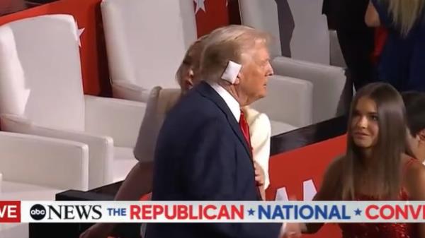 在密尔沃基,这位前总统和他的家人在摔跤手浩克·霍根的演讲前坐在一个包厢里,向人群中的与会者挥手并指着他们。30岁的蒂芙尼在去座位的路上从父亲身边经过,她笑了笑,说了几句话,然后俯身在他的脸颊上亲了一下——特朗普似乎转过头来避开了他。