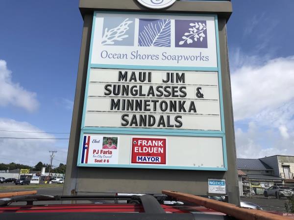 在两人通电话的前一天,毕比注意到埃尔杜恩和法里亚的竞选标语挂在布朗角大道Ocean Shores Soapworks外的一个大广告牌上。法利亚是店主劳里·卡齐米尔(Laurie Kazimir)的熟人,她曾问卡齐米尔(Laurie Kazimir),她和埃尔杜恩是否可以在大帐篷上展示政治标志,这得到了批准。