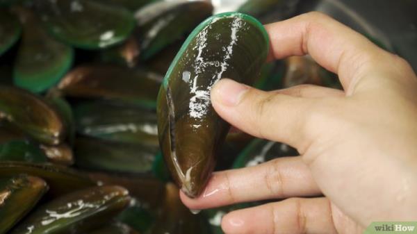 购买冷藏、封闭、闻起来咸的贻贝。当你在你的商店或当地的海鲜市场购买贻贝时,确保它们储存在冰上或冷藏。然后,检查蛋壳,看它们是否潮湿,是否紧闭。如果贻贝的壳是干的,轻敲时保持打开状态,或者闻起来有腐烂的味道,那么这些贻贝很可能已经死了,所以不要买。贻贝出售和煮活,以确保你不吃死贻贝,因为死贻贝是不安全的。轻拍或挤压任何打开的贻贝,看看它们是否合上了,这意味着它们还活着,可以安全食用。一些贻贝死亡或成群死亡是很正常的。然而,如果贻贝储存不当或大部分看起来不好,就不要买了。