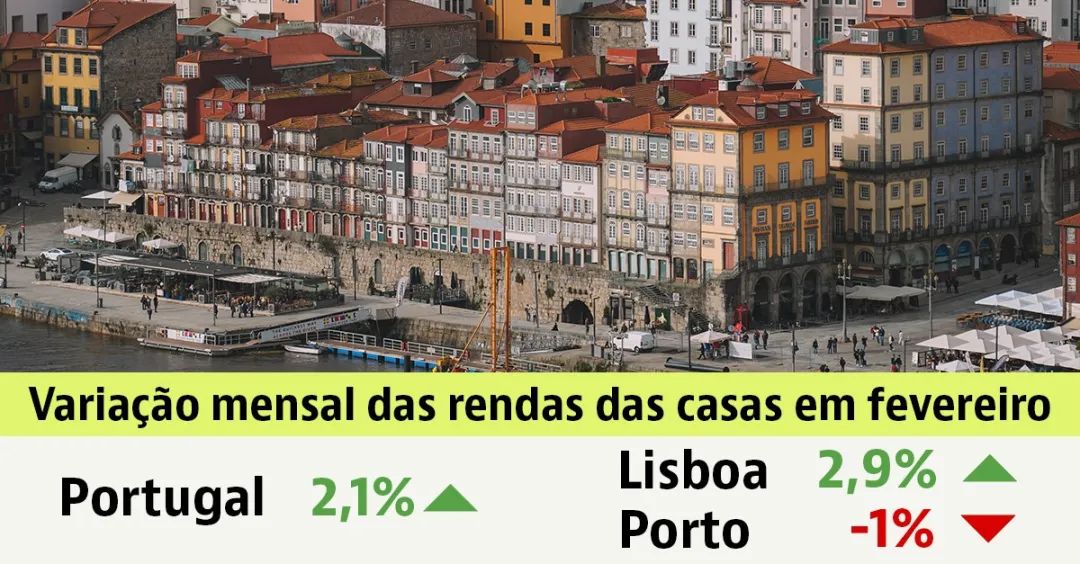 与前一个月相比,2月份,莱里亚(3.0%)和里斯本(2.9%)的房屋租金增幅最大。