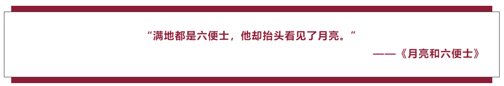 英国小说家威廉·萨默赛特·毛姆先生曾借他的小说《月亮与六便士》表达尽管我们一直背对天空的辛苦劳作,但也会因为心中那股始终支持自己的力量,使得疲惫之余能够抬头看见夜空,看见月光。